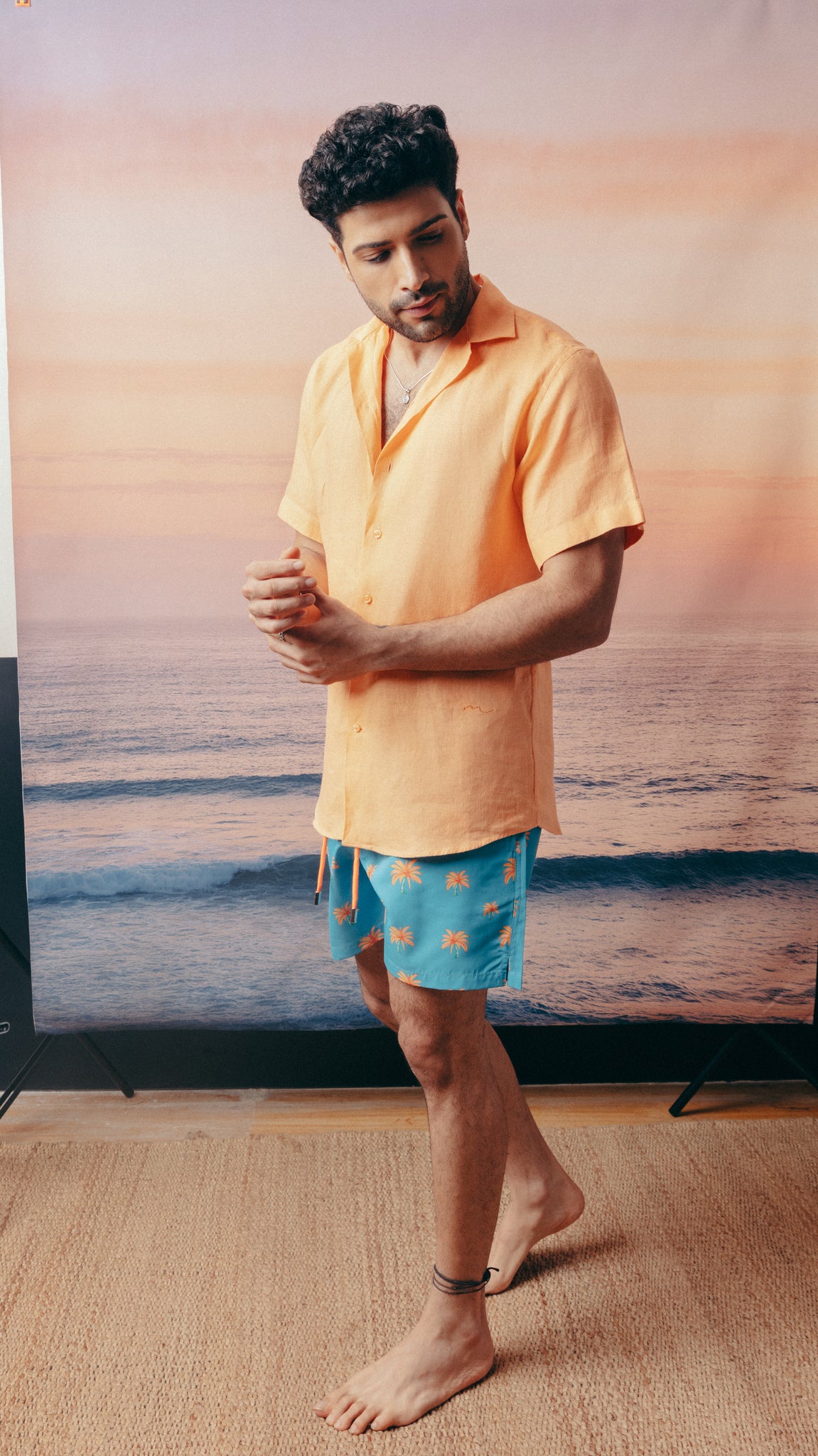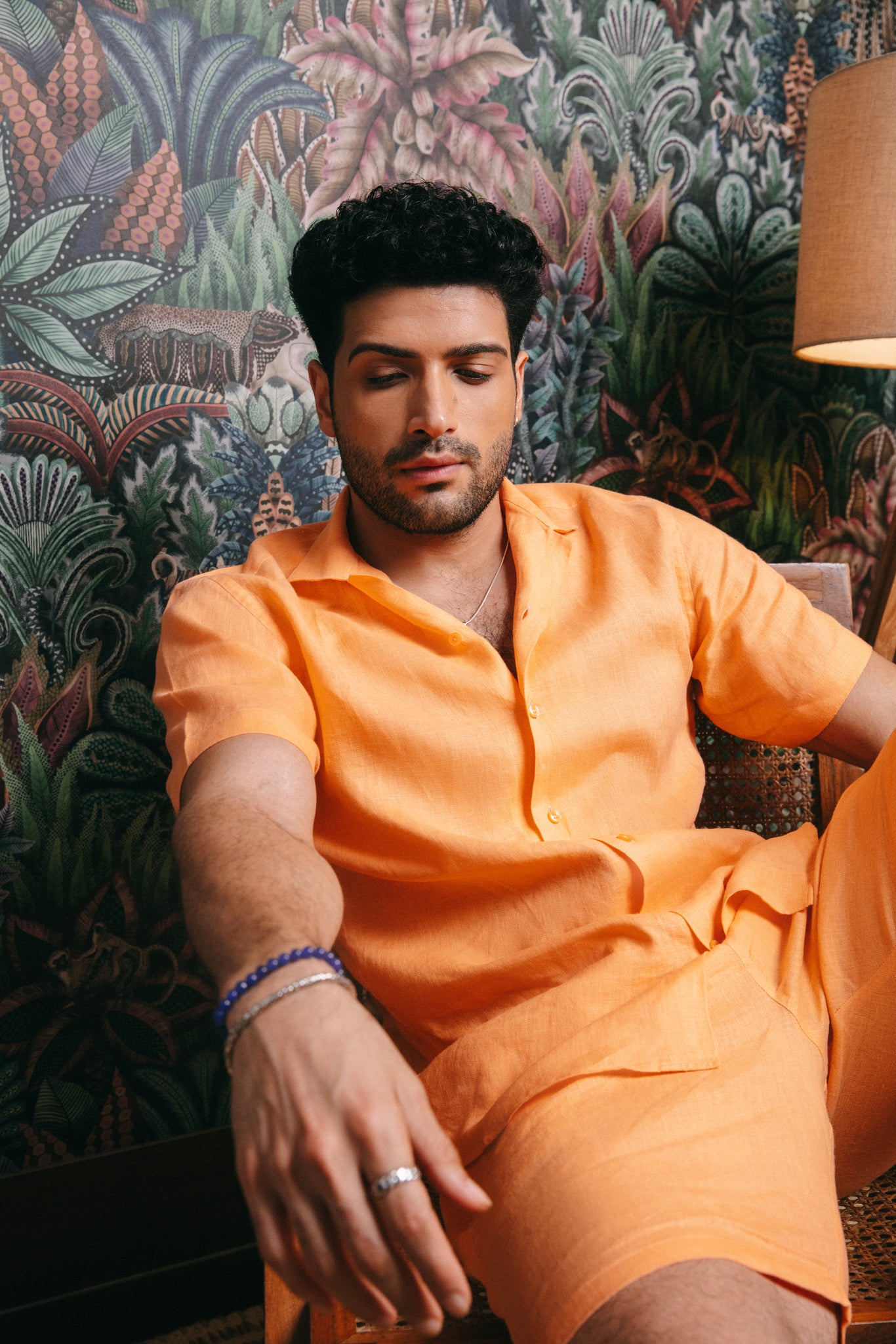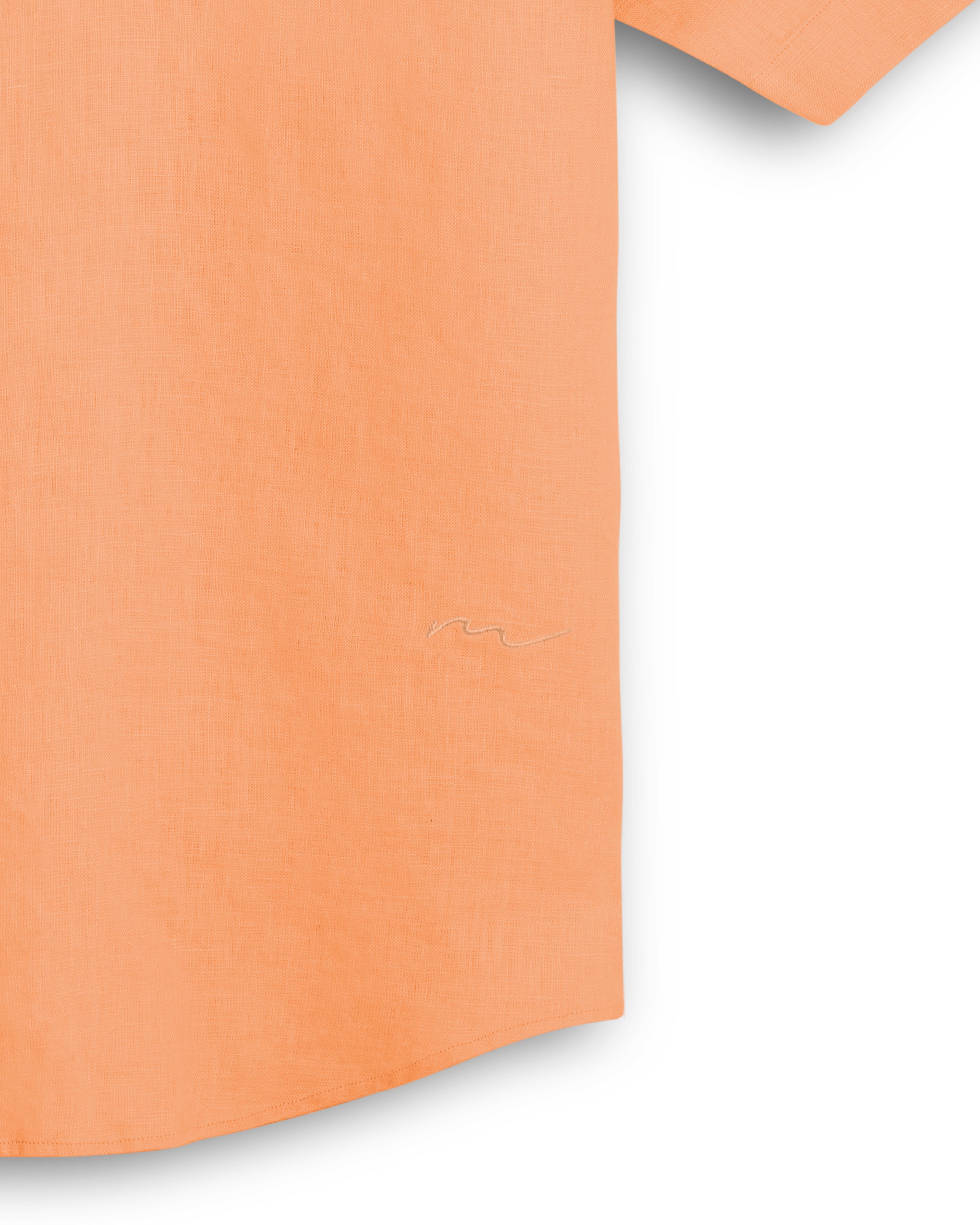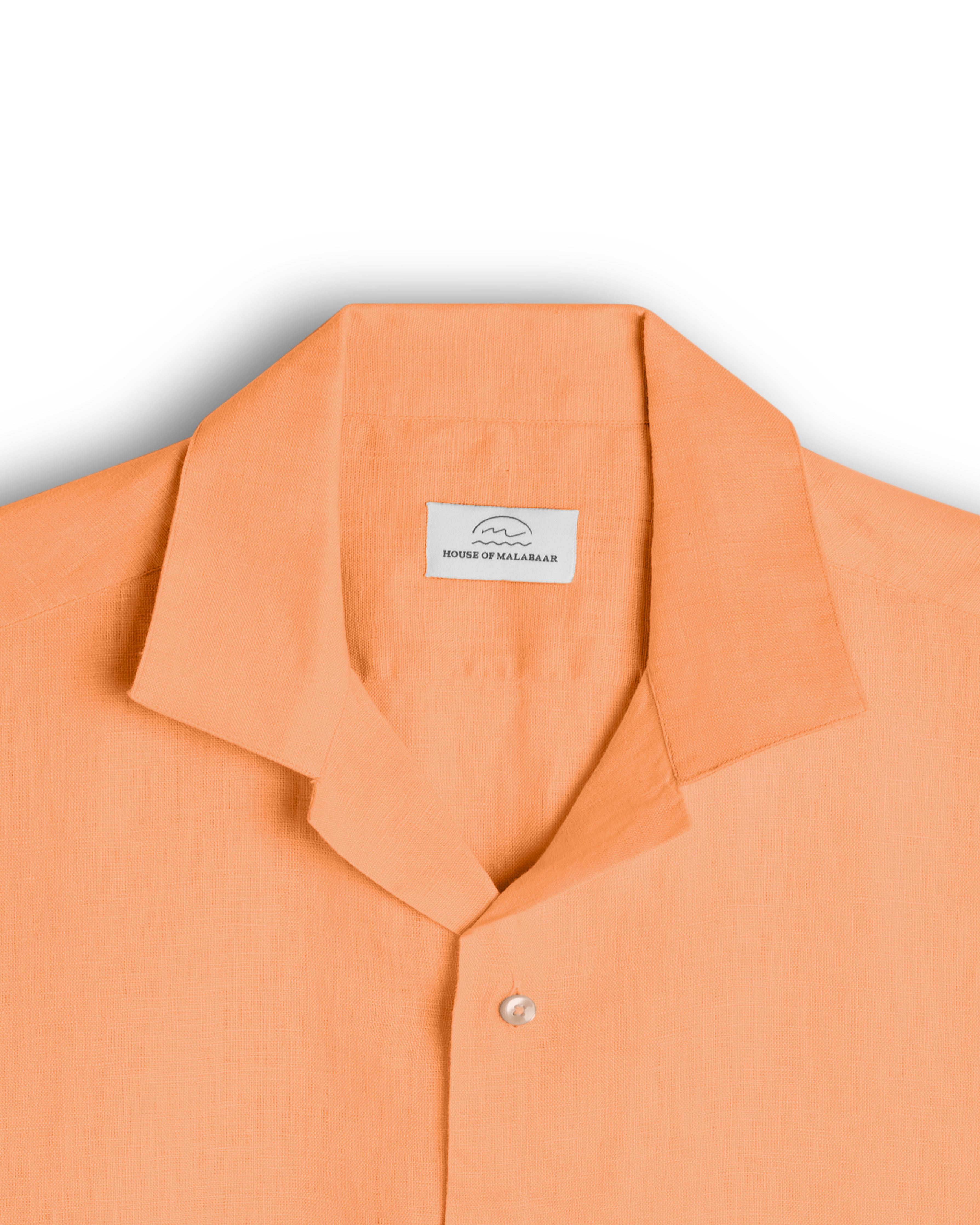 Crafted from 100% premium light orange linen sourced from Portugal, this Cuban Collar shirt from House of Malabaar exudes effortless elegance. Designed with a tailored yet relaxed fit, it offers breathability and comfort, making it an ideal choice for both casual and sophisticated settings. The shirt features a Cuban collar, short sleeves, and a lightweight fabric that allows for movement and versatility. Pair it with matching linen trousers or style it with your favorite HOM swimming shorts.