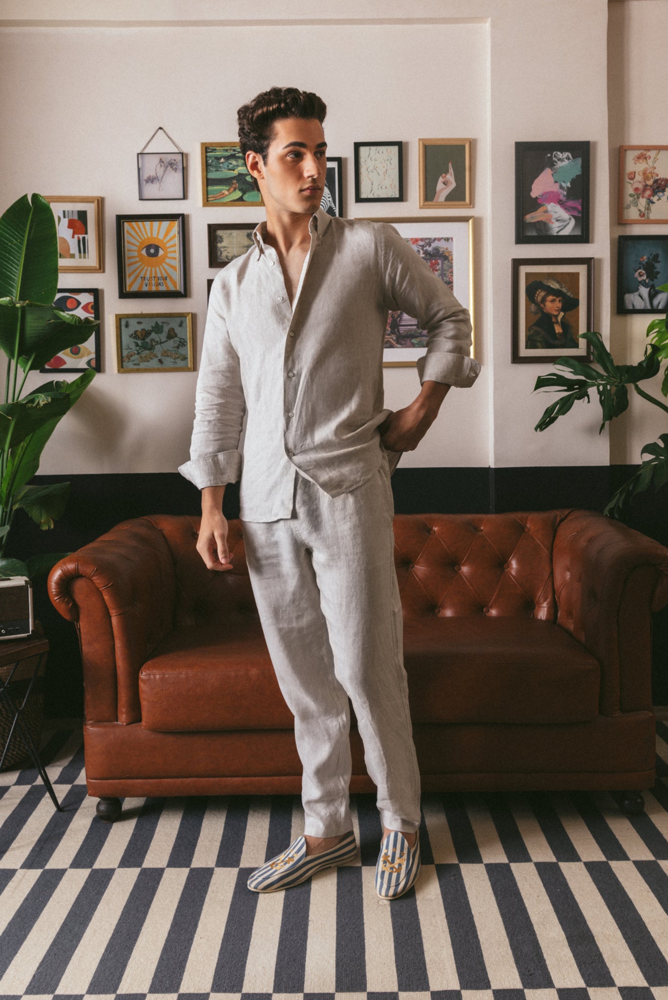 Crafted from 100% premium Sand colored linen sourced from Portugal, these pants from House of Malabaar strike the perfect balance between understated elegance and comfort. The rich, dark hue adds a touch of sophistication, while the soft, breathable fabric ensures all-day comfort. Designed with a relaxed fit, these pants transition seamlessly from casual outings to more polished settings. Pair them with a matching shirt.