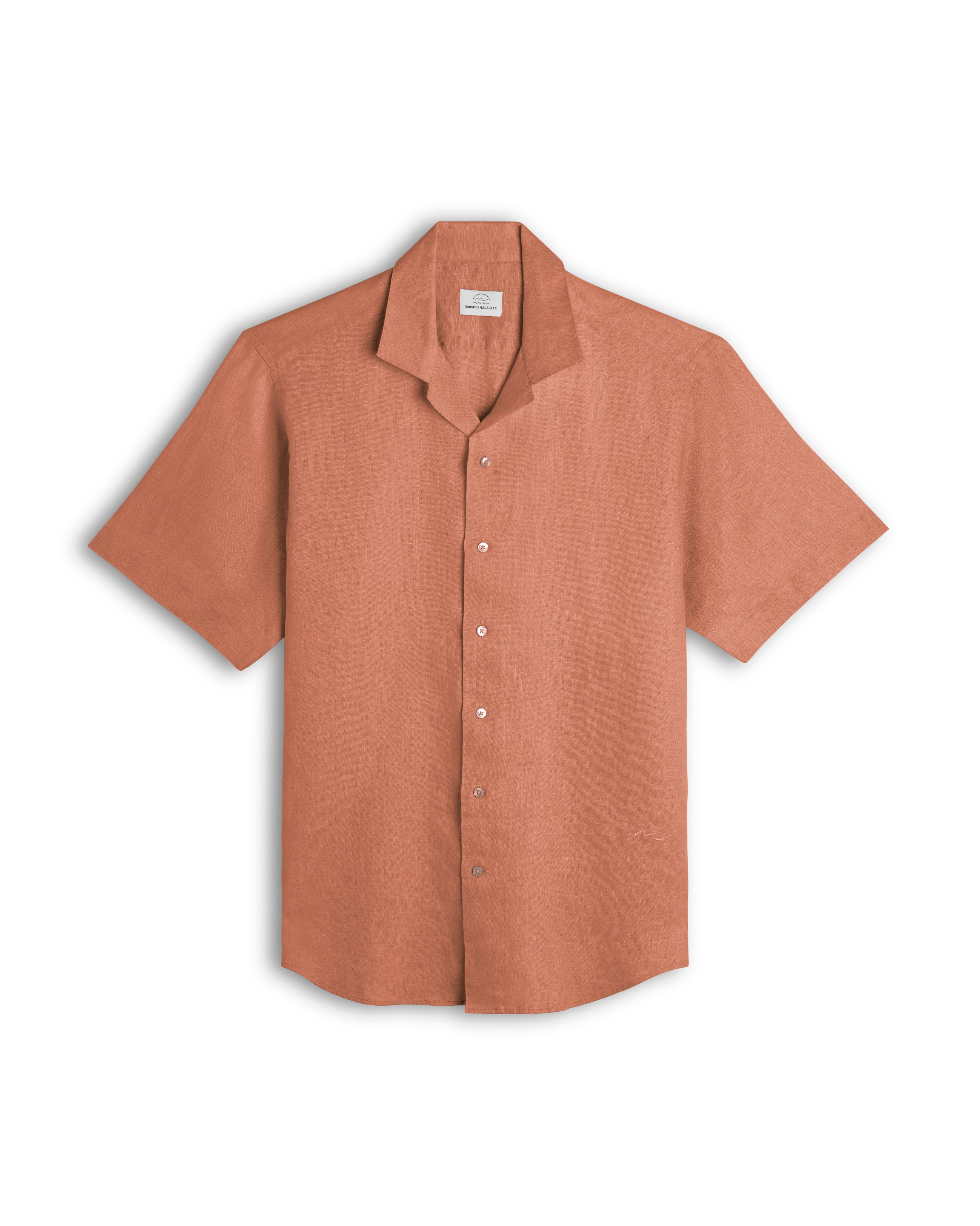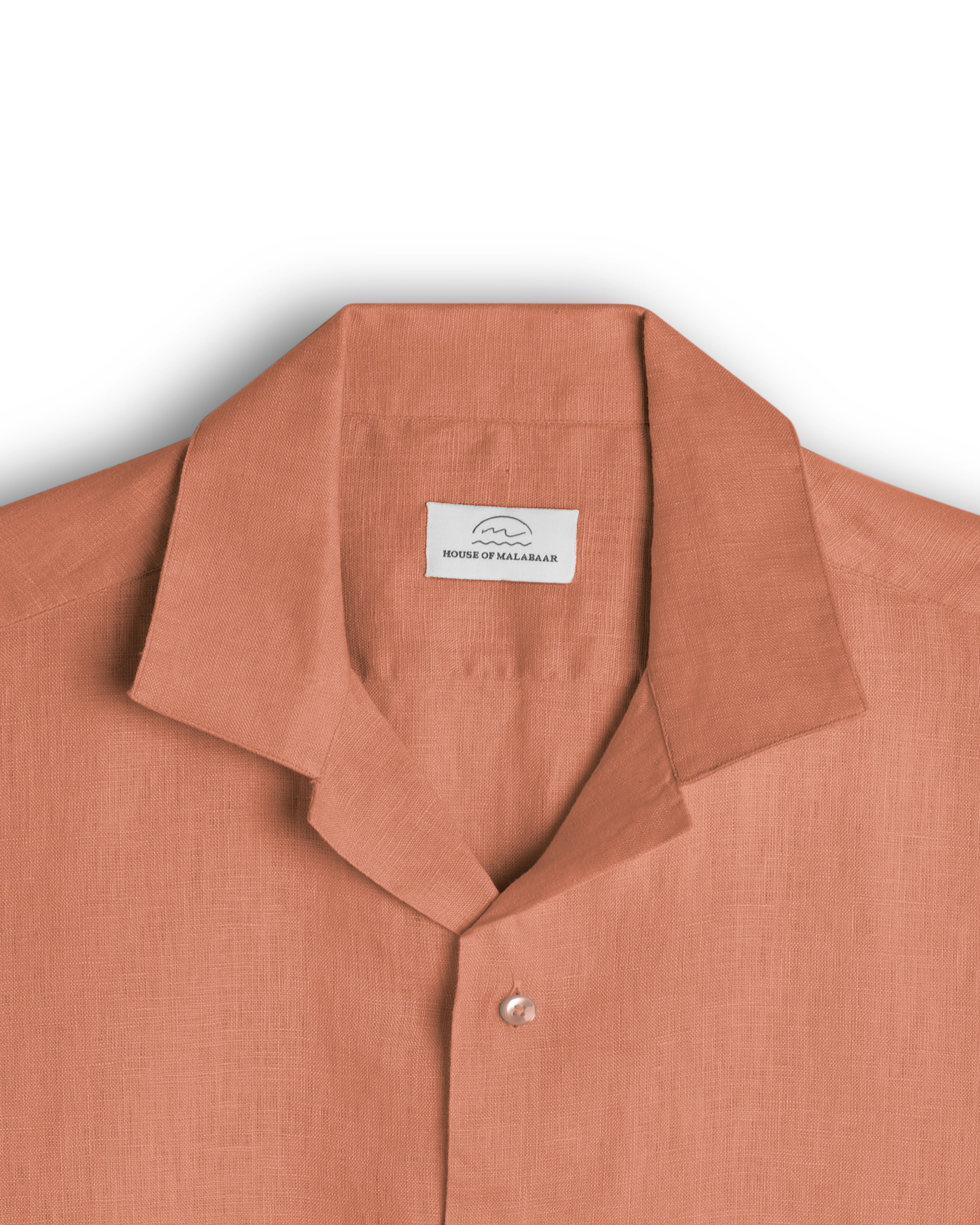 Crafted from 100% premium Terracotta linen sourced from Portugal, this Cuban Collar shirt from House of Malabaar exudes effortless elegance. Designed with a tailored yet relaxed fit, it offers breathability and comfort, making it an ideal choice for both casual and sophisticated settings. The shirt features a Cuban collar, short sleeves, and a lightweight fabric that allows for movement and versatility. Pair it with matching linen trousers or style it with your favorite HOM swimming shorts.
