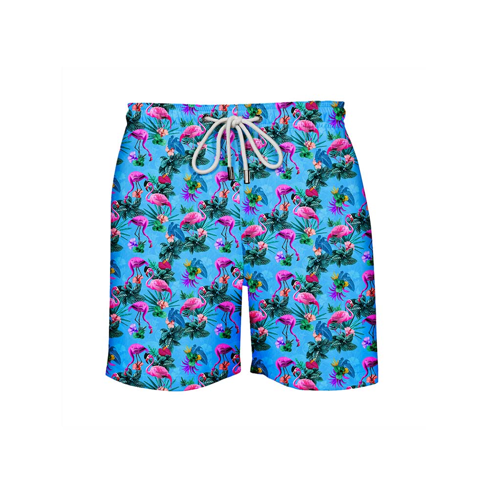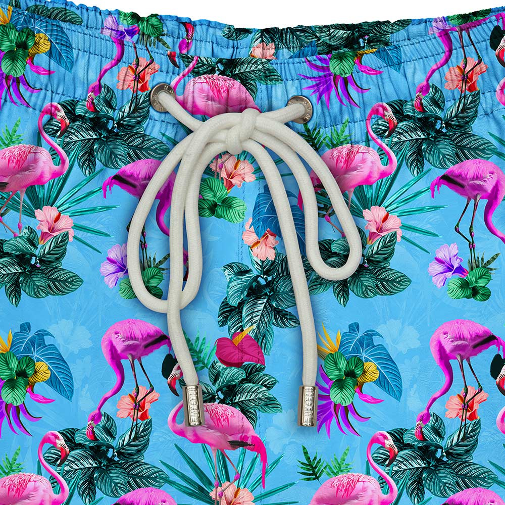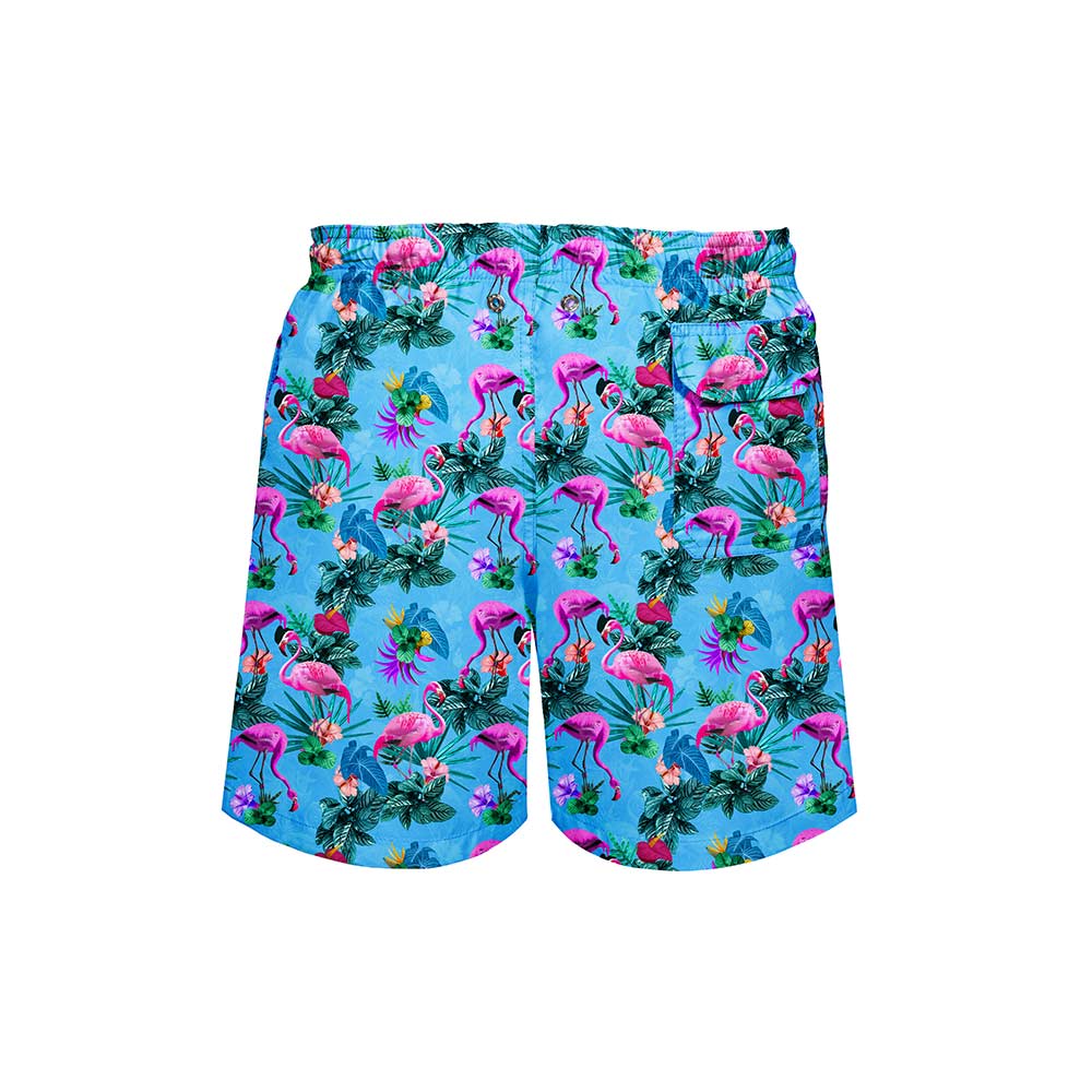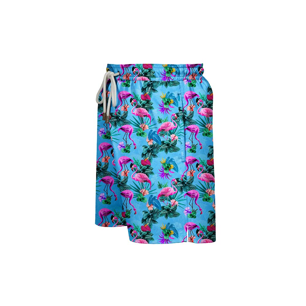 Our flamboyant of flamingos took a dip in neon waters and came out iridescent! Turn it up at your next beach or poolside party with this fun pair of shorts.