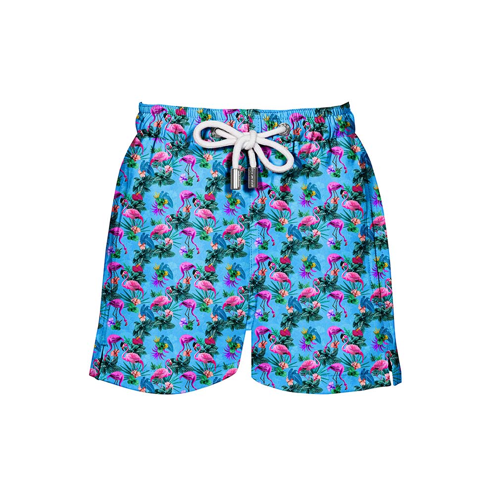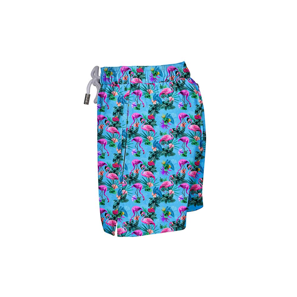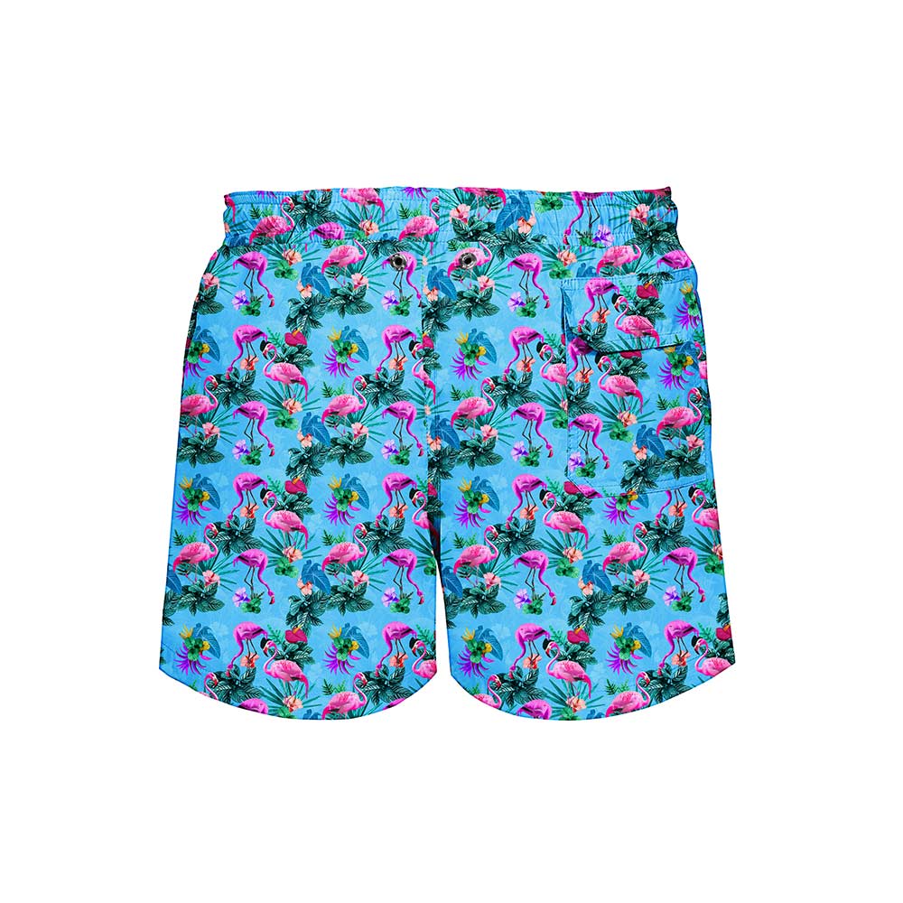 Our flamboyant of flamingos took a dip in neon waters and came out iridescent! Turn it up at your next beach or poolside party with this fun pair of shorts.